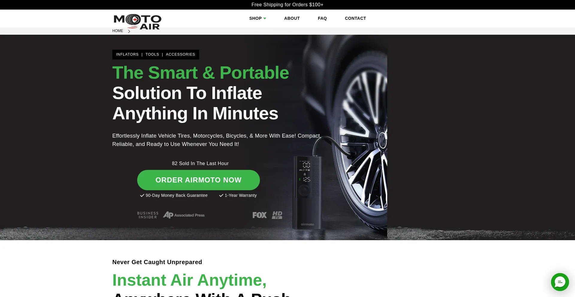 Never leave home without an Airmoto, the best-selling portable air pump. Great for road trips and everyday use.