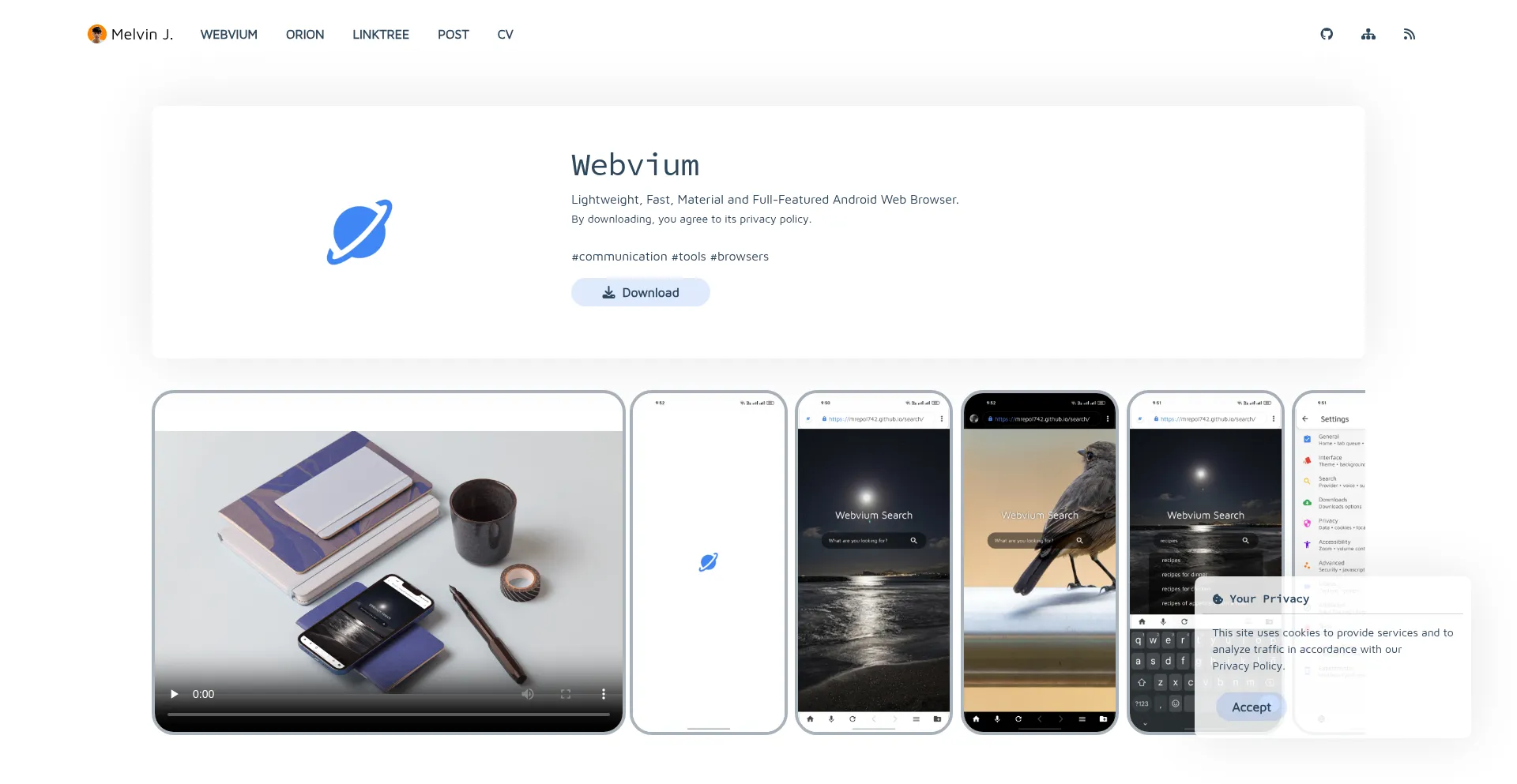 Webvium - Lightweight, Fast, Material and Full-Featured Android Web Browser.