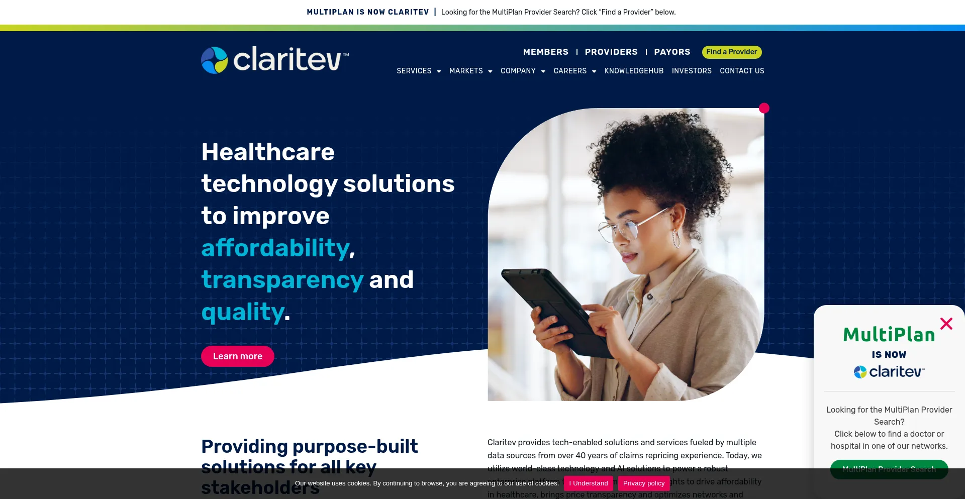 provider.multiplan.com c.clarity.ms segments.company-target.com px.ads.linkedin.com www.googletagmanager.com acdn.adnxs.com investors.multiplan.us providersearch.multiplan.com go.claritev.com www.instagram.com +32 más