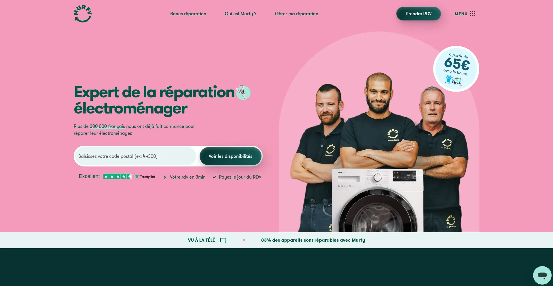 Murfy, nouveau service de réparation d'éléctroménager • Plébiscité par nos clients : 5/5 • Forfait réparation à prix fixe et sans surprise • Garantie 6 mois inclus...