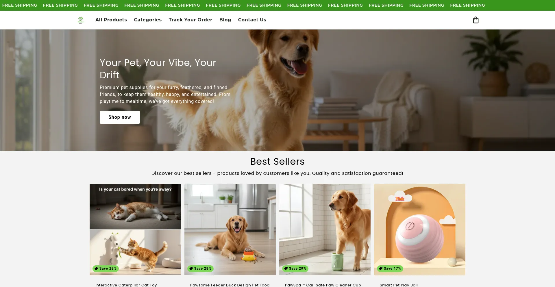 Shopping, Reliable Payment Method, Deals, Uses Free eCommerce Engine, In Development, Shopify Platform, Facebook Integration, Young Domain
