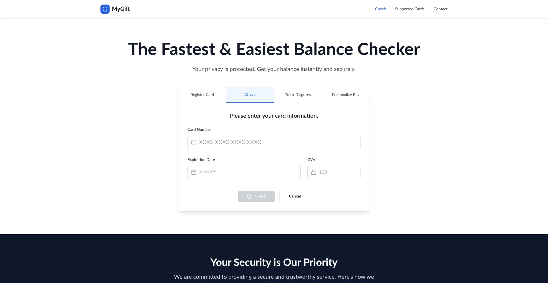 Check your gift card balance instantly and securely. Your privacy is protected with industry-standard encryption.