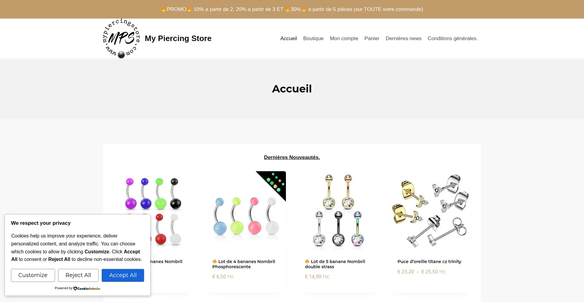 El sitio web implementa mecanismos de consentimiento de cookies en cumplimiento con regulaciones de privacidad como GDPR o CCPA. Esto demuestra que mypiercingstore.com adhiere a estándares de protección de datos y proporciona a los usuarios control sobre prácticas de recolección de datos personales.