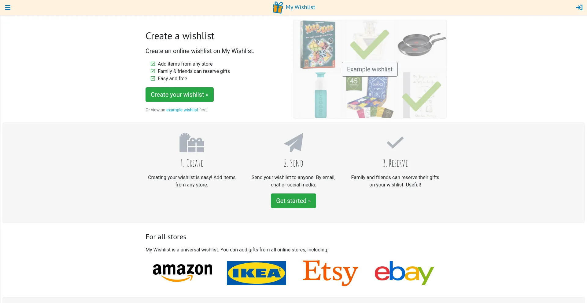 Create your online wishlist here. For any occasion. Add items from any store. Invitees can reserve gifts. It's easy and free!