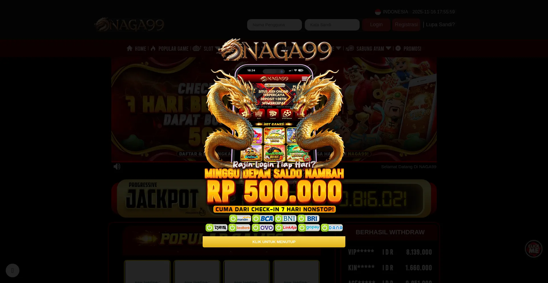 NAGA99 adalah situs slot gacor Slot88 dan Slot77 terpercaya dengan RTP tinggi dan peluang maxwin terbesar. Mainkan game slot gacor hari ini dan rasakan sensasi jackpot terbesar ...