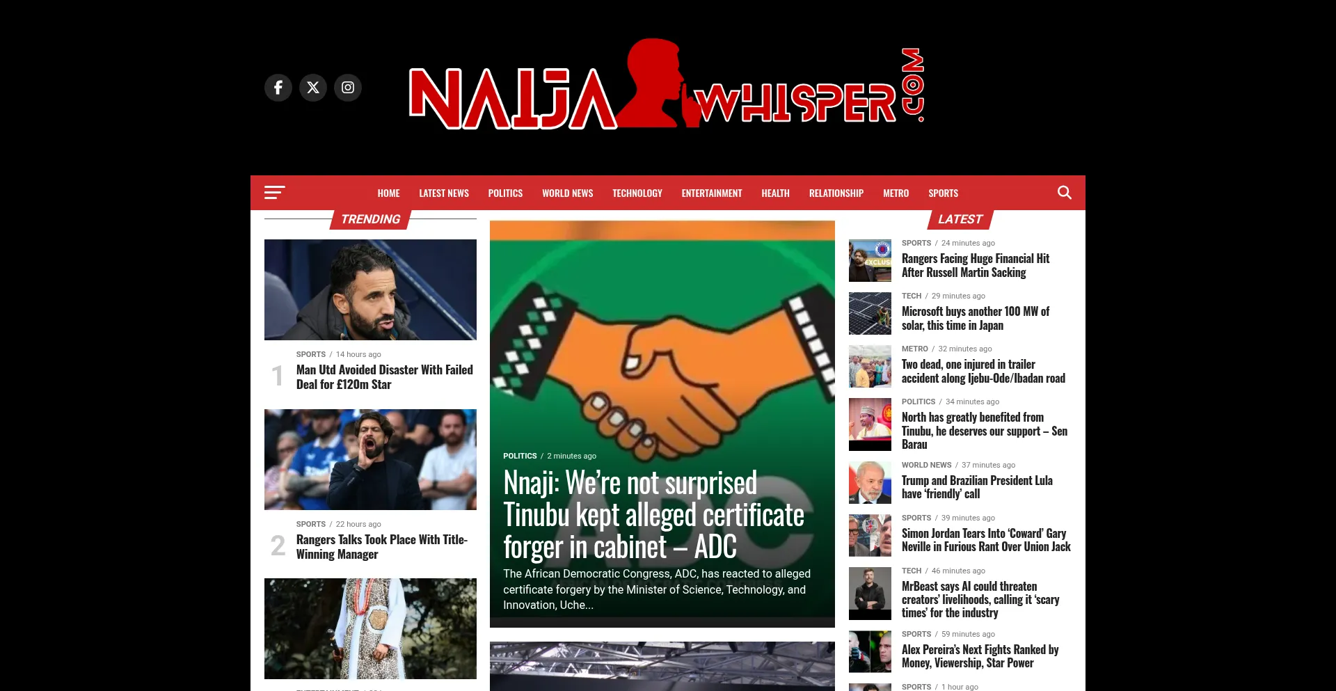 La presencia de enlaces de redes sociales en el sitio web indica que naijawhisper.com mantiene cuentas oficiales en redes sociales, lo que es un indicador positivo de credibilidad y compromiso.