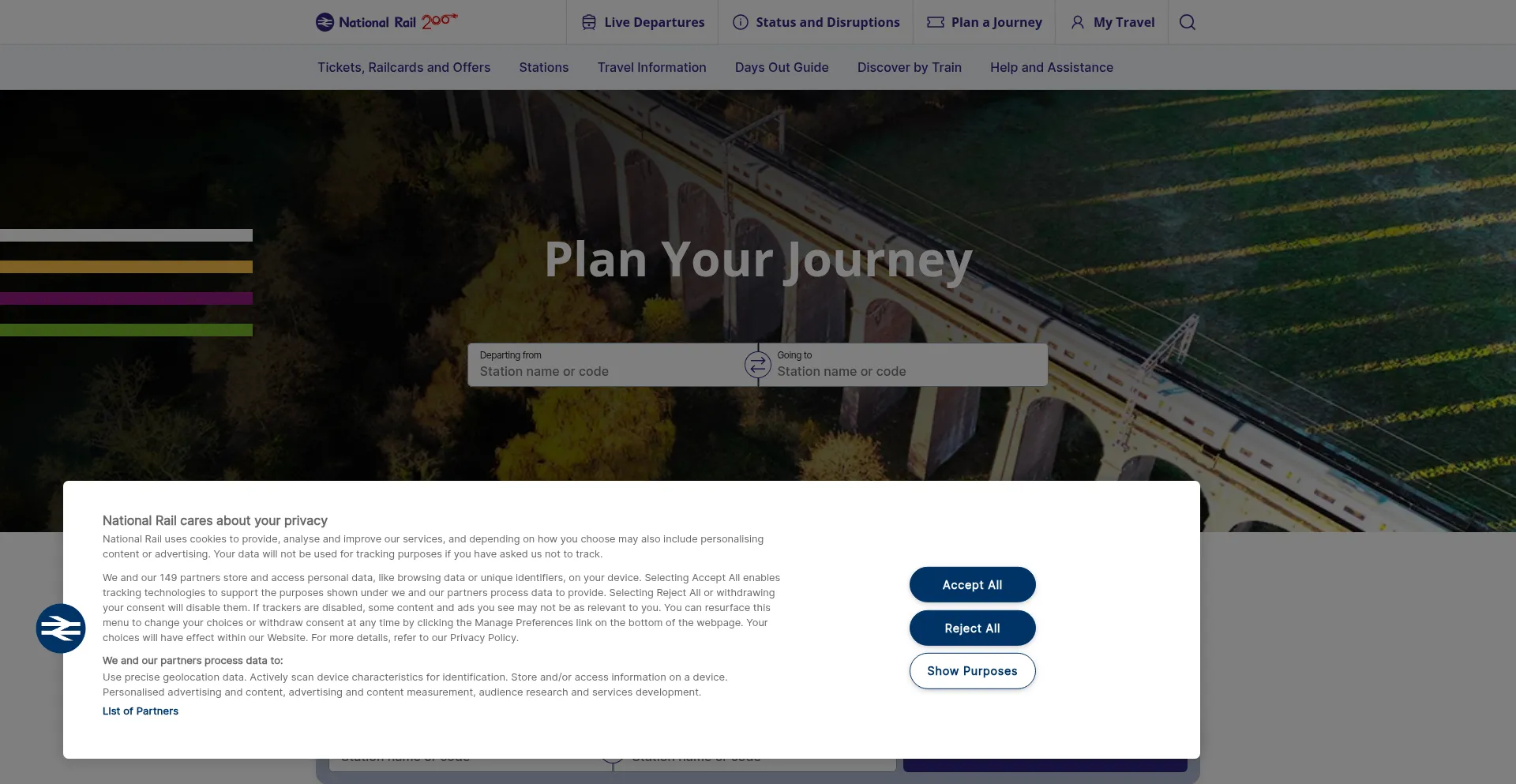 El sitio web implementa mecanismos de consentimiento de cookies en cumplimiento con regulaciones de privacidad como GDPR o CCPA. Esto demuestra que nationalrail.co.uk adhiere a estándares de protección de datos y proporciona a los usuarios control sobre prácticas de recolección de datos personales.