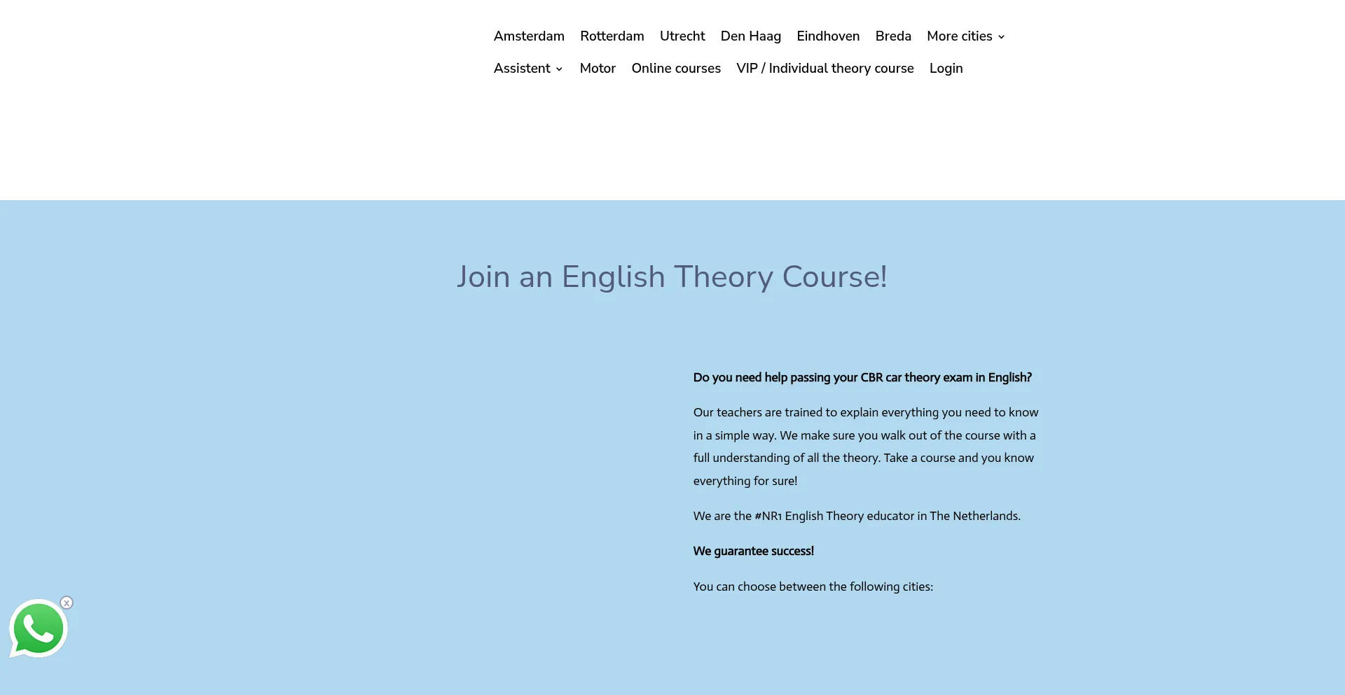 Theory Course to easily pass your CBR Theory Exam in English. Highest Passing Rate and Best Prices. With Free study materials. In every city.