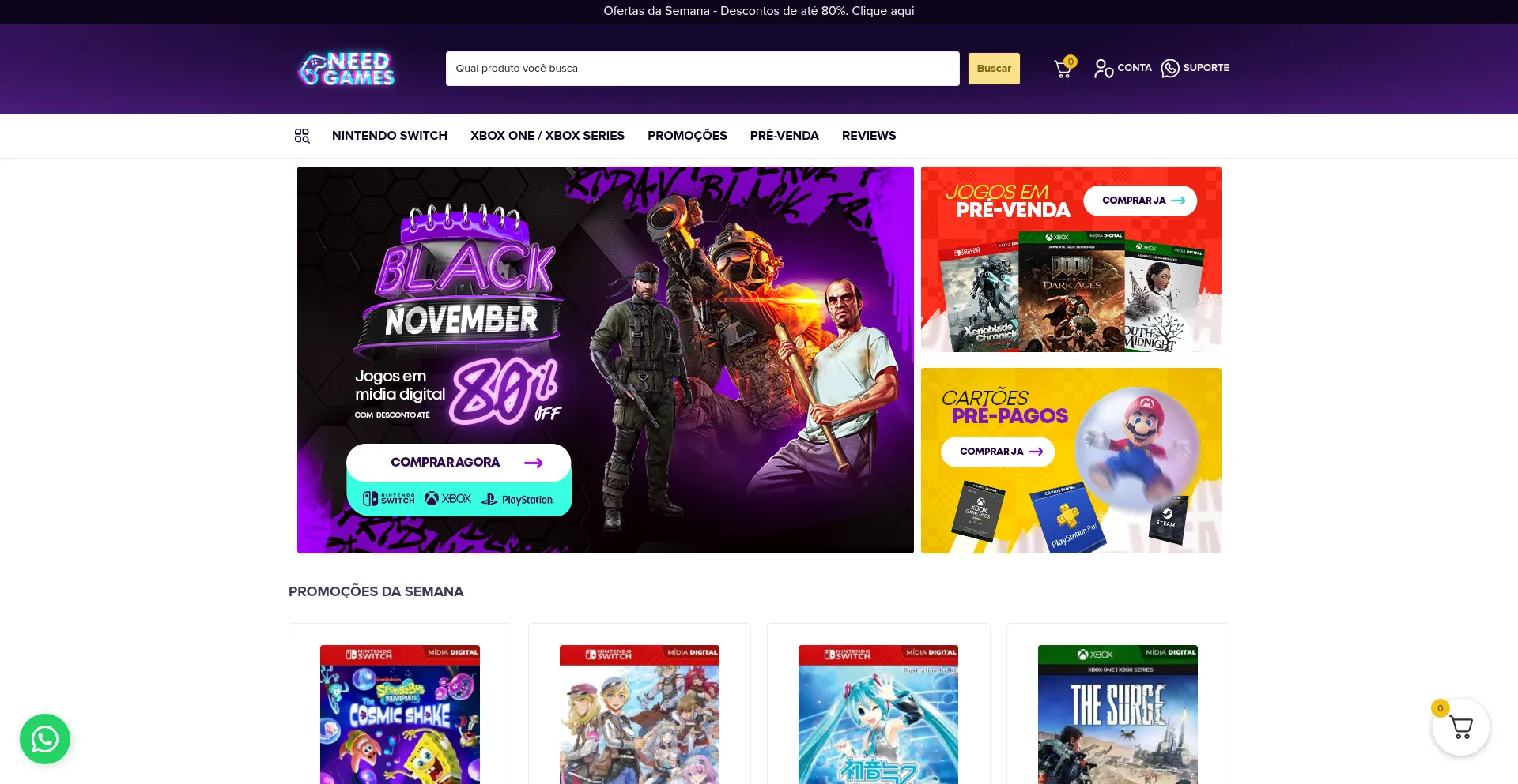 Na NeedGames Você encontra seus jogos de Nintendo Switch e XBOX ONE S/X em mídia digital com o melhor preço do mercado e garantia total.