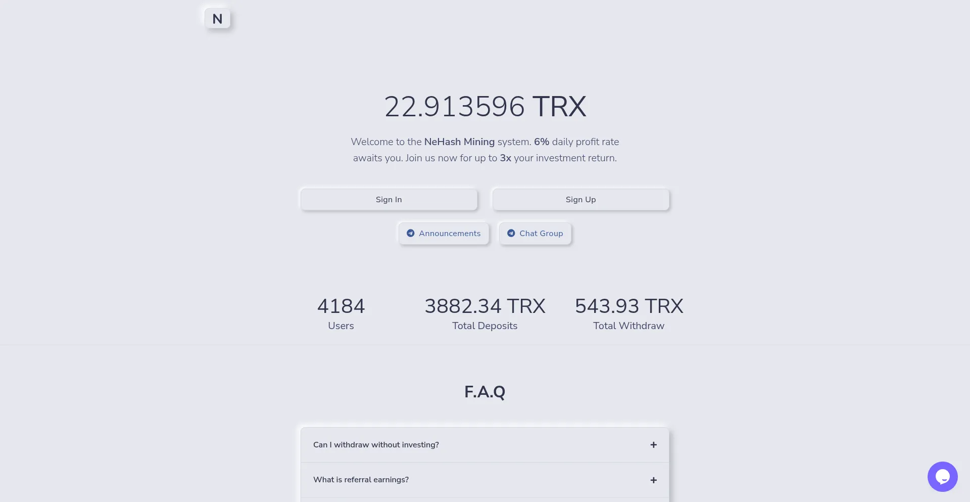 NeHash - Mining & Investment System