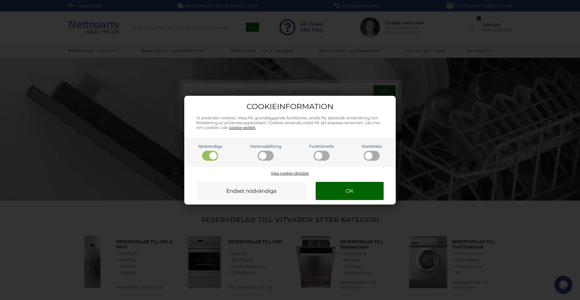 Förnya dina vitvaror med reservdelar och tillbehör till alla märken. ✓Köp hos Nettoparts ✓Snabb leverans ✓Bra service