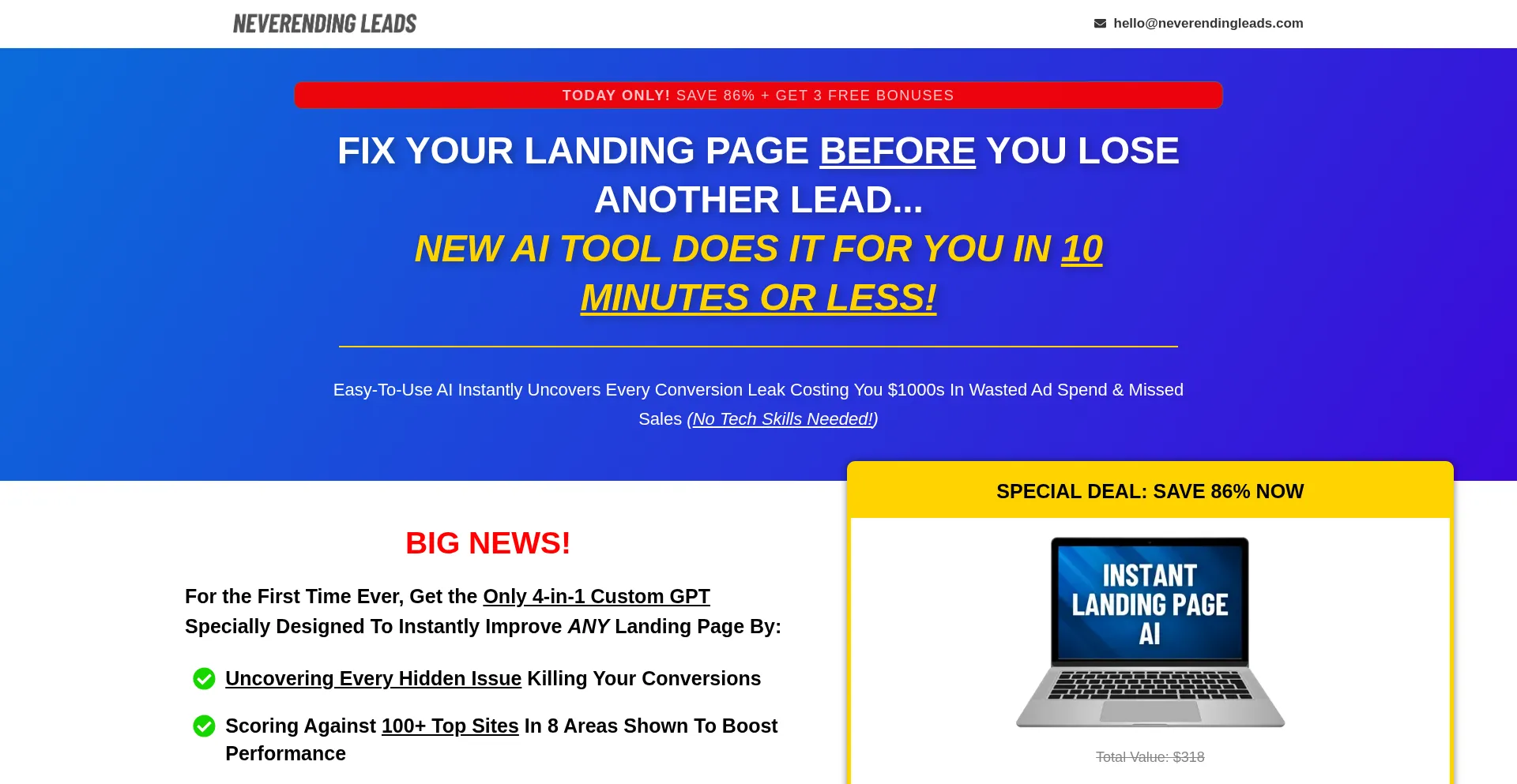 Instant Landing Page Fix AI – Copy – Neverending Leads