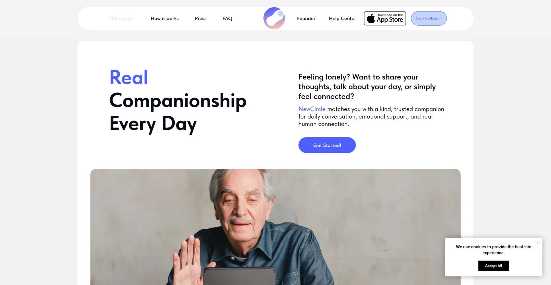 New Circle provides daily companionship and emotional support for seniors and adults — helping reduce loneliness and improve wellbeing through real human connection