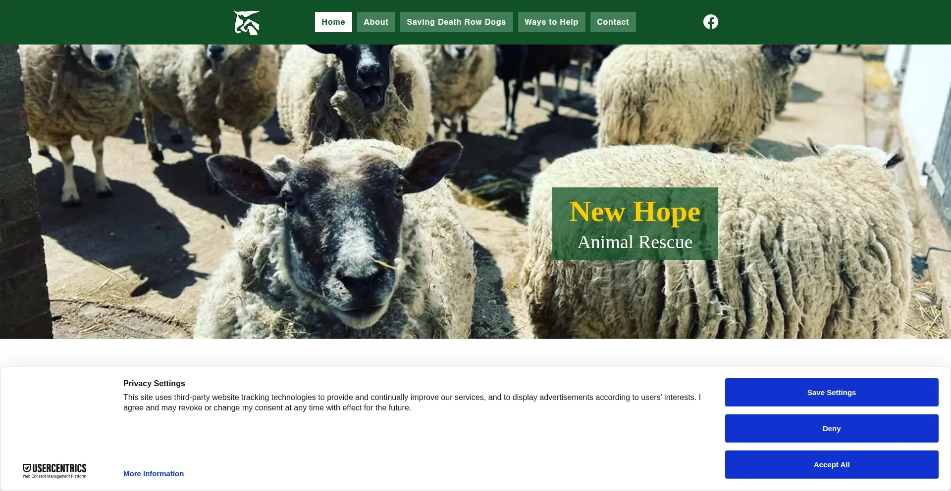 web.cmp.usercentrics.eu www.facebook.com static.parastorage.com app.usercentrics.eu static.wixstatic.com siteassets.parastorage.com browser.sentry-cdn.com newhopeanimalrescue.org.uk v1.api.service.cmp.usercentrics.eu www.newhopeanimalrescue.org.uk +4 más