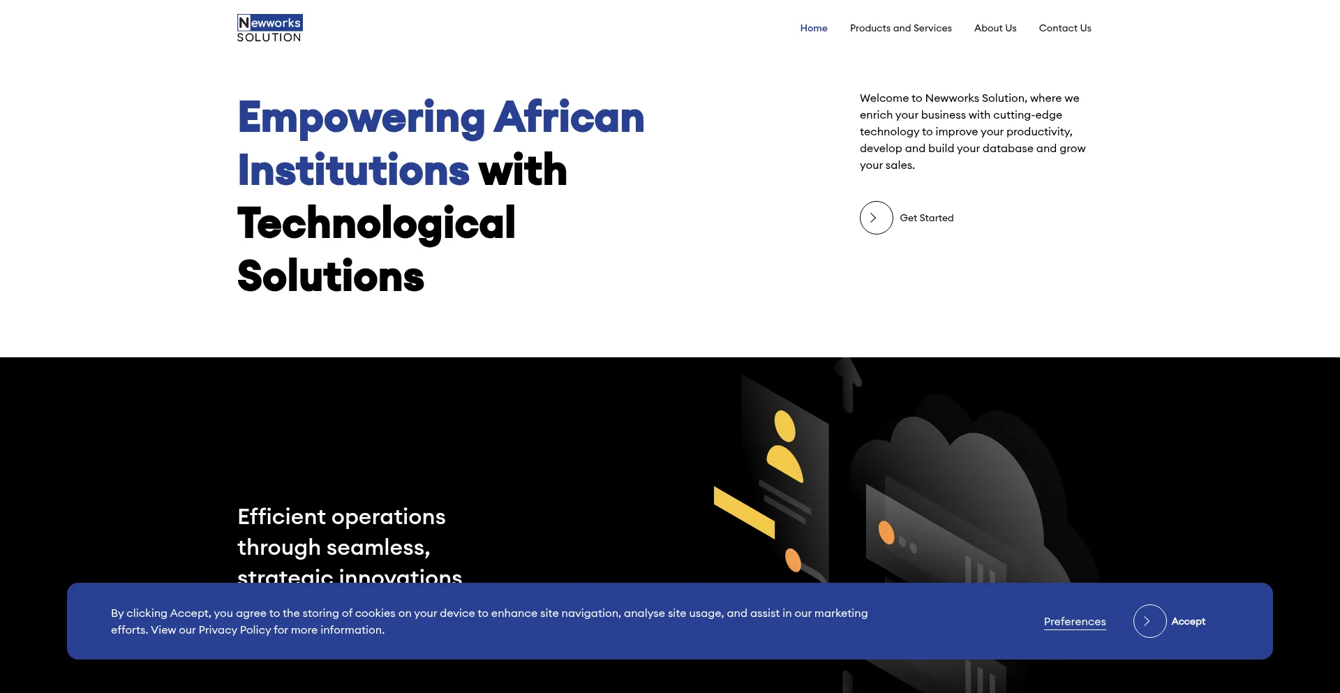 El sitio web newworkssolution.com está construido usando React, una biblioteca de JavaScript popular para crear interfaces de usuario interactivas.