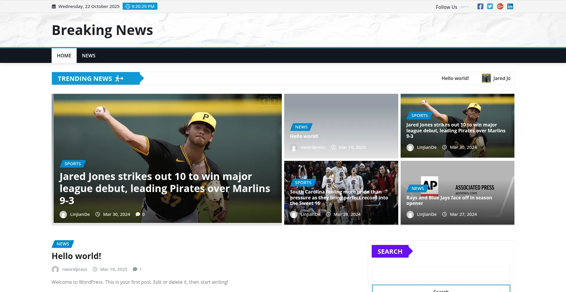 Sports, News Media, In Development, Wordpress Platform, SEO Optimization, Animate.css Framework, AI-generated Text
