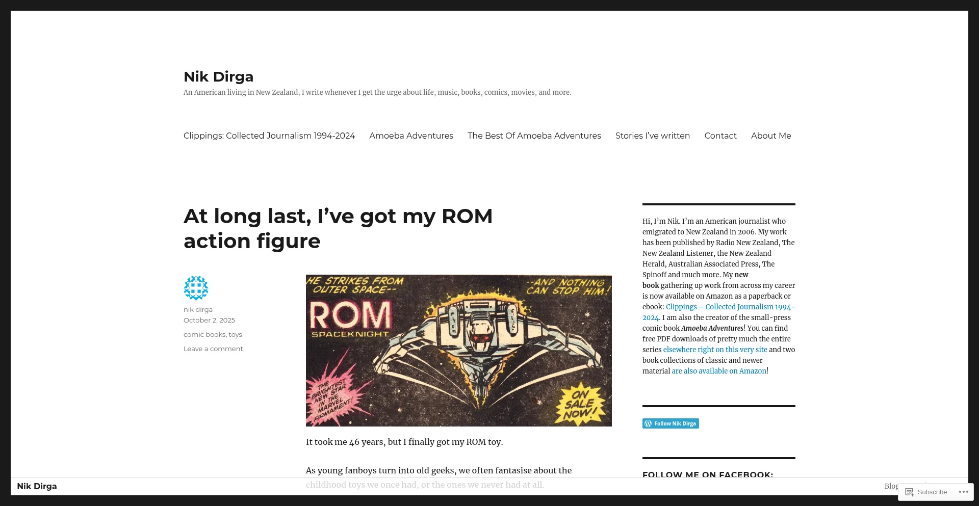Nik Dirga – An American living in New Zealand, I write whenever I get the urge about life, music, books, comics, movies, and more.