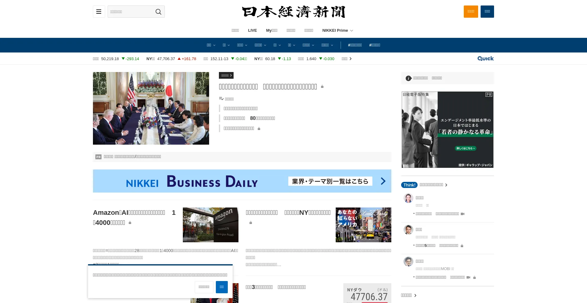 日本経済新聞の電子版。日経や日経BPの提供する経済、企業、国際、政治、マーケット、情報・通信、社会など各分野のニュース...