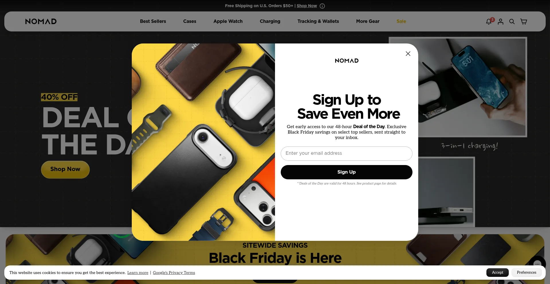 El sitio web implementa mecanismos de consentimiento de cookies en cumplimiento con regulaciones de privacidad como GDPR o CCPA. Esto demuestra que nomadgoods.com adhiere a estándares de protección de datos y proporciona a los usuarios control sobre prácticas de recolección de datos personales.