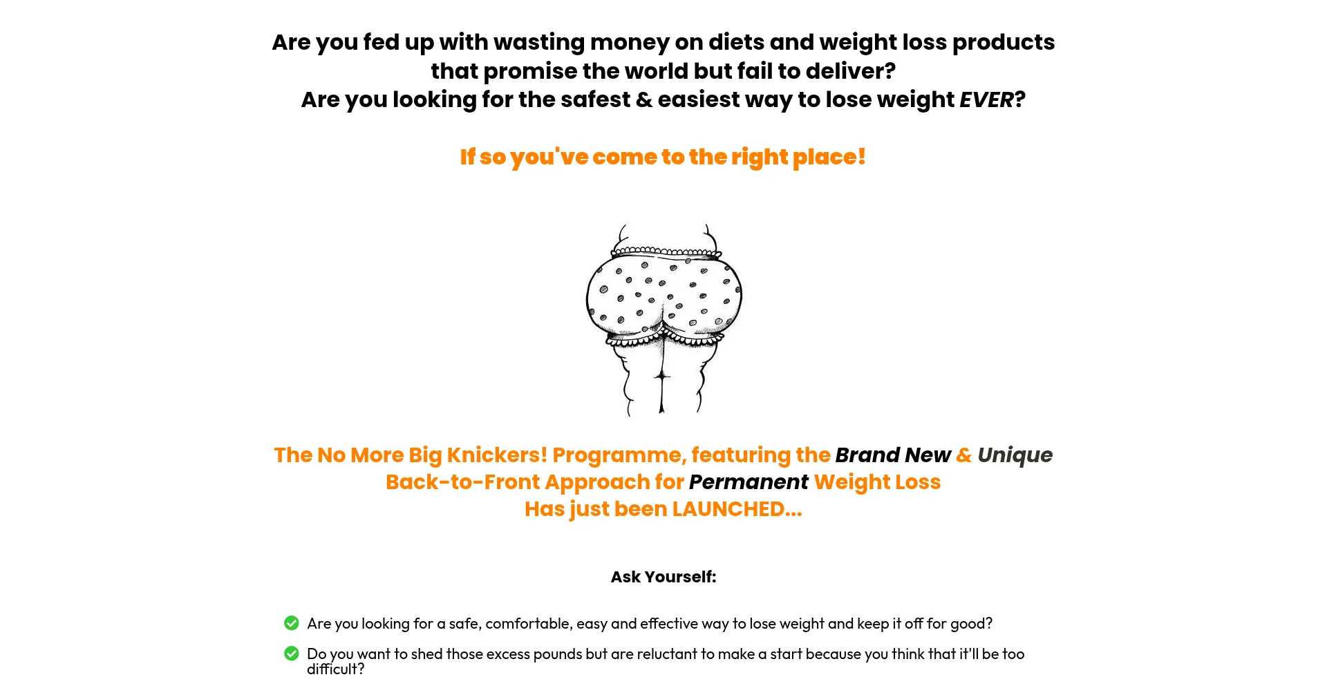 NMBK is the last weight loss programme you'll ever need! Safe, comfortable & effective & the 'Back-to-Front' approach means you simply cannot fail.