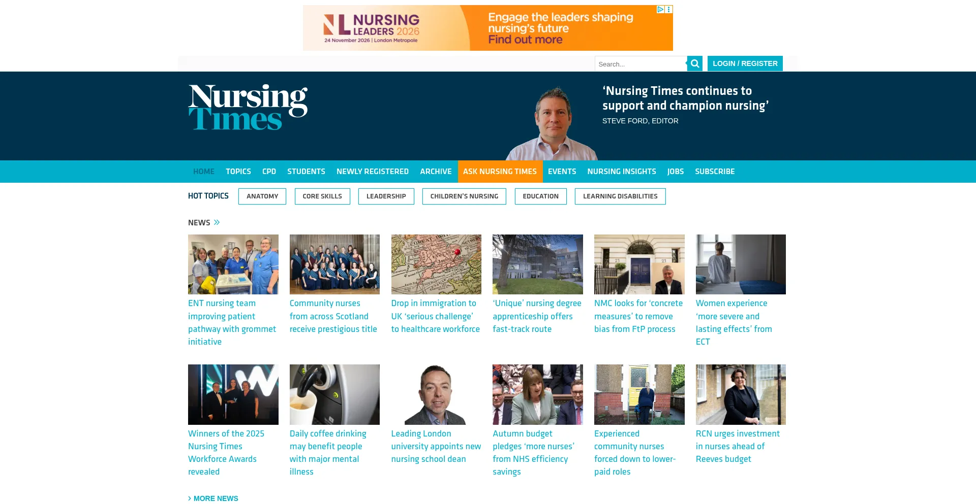 A leading source of nursing news and the most-visited nursing website in Europe. Includes CPD, clinical research and innovation to support nurses’ careers.