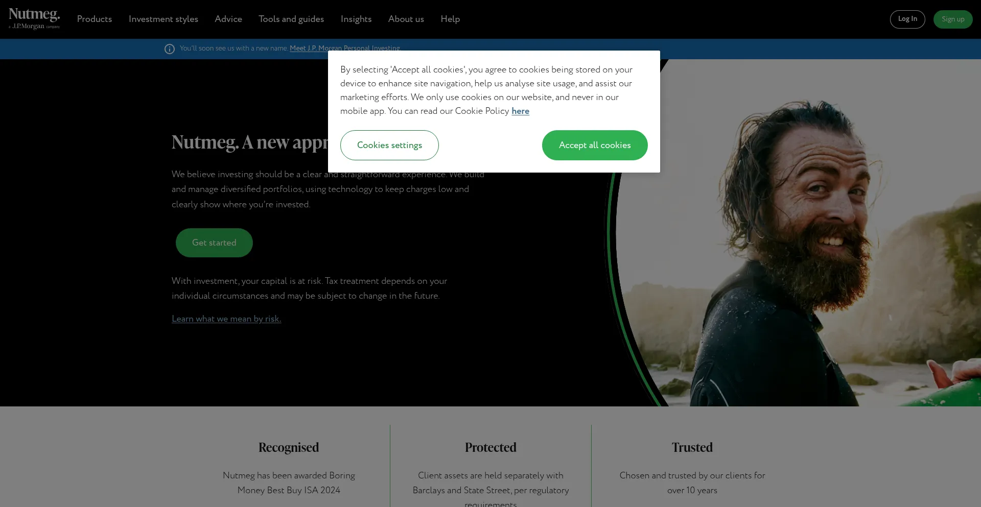 Nutmeg is an online investment management service. Invest money using our General Investment Account, ISA, Pension, Lifetime ISA or Junior ISA.