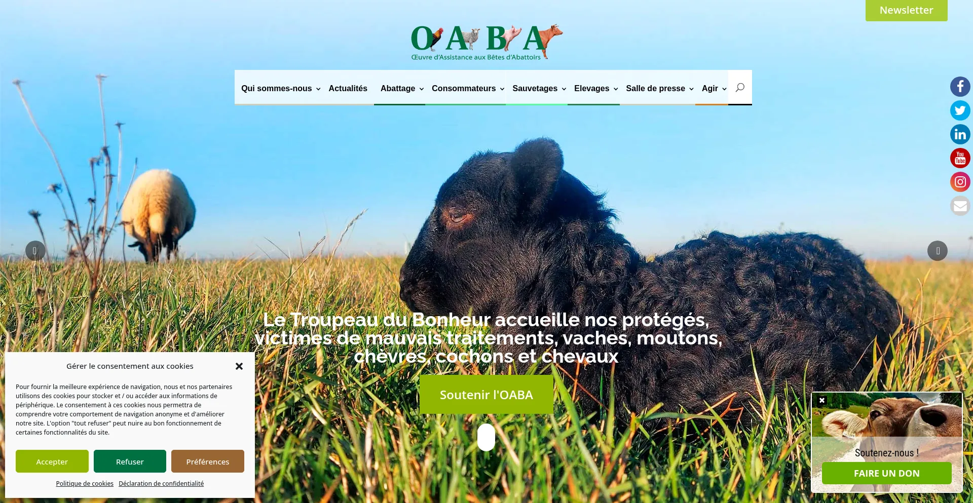 L’OABA est une association de protection des animaux de ferme. Elle lutte contre la maltraitance animale, de l’élevage à l’abattage en France et sensibilise à une conso...