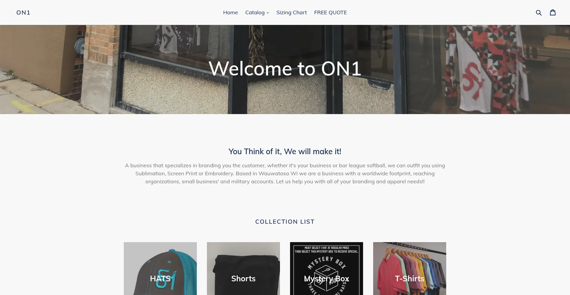 You Think of it, We will make it! ON1 Offers: Sublimation, Embroidery, Screen Printing & Corporate Apparel.