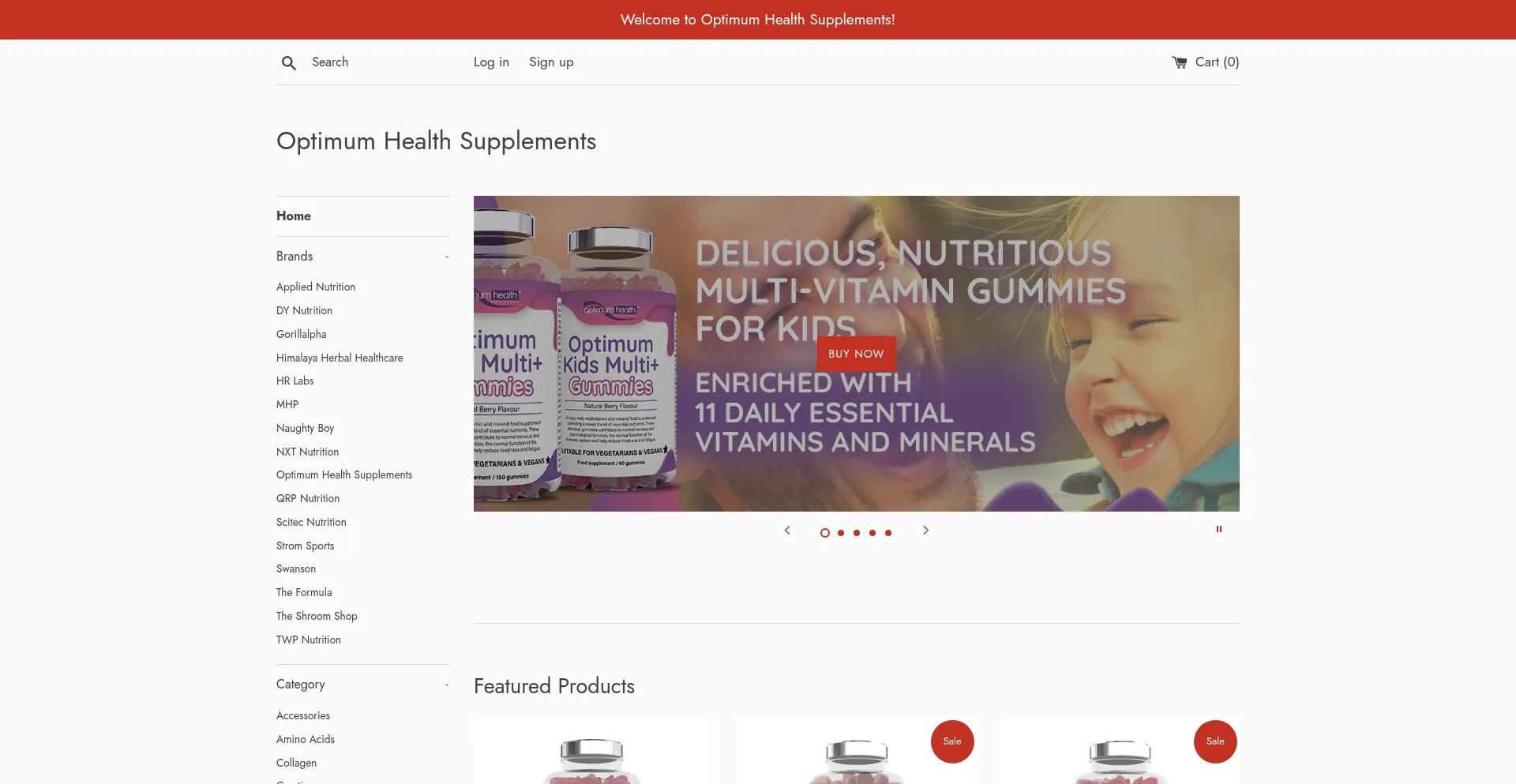 Optimum Health Supplements Home page
