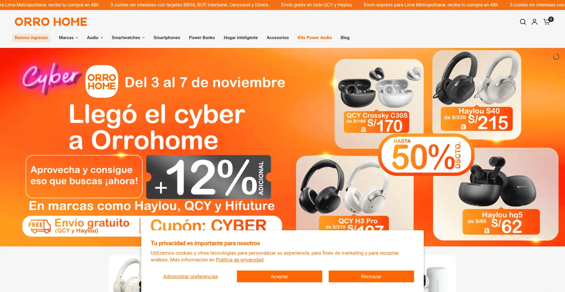 En Orro Home encuentra : audio premium, smartphones, smartwatches y más, con envío exprés a Lima y 3 cuotas sin intereses . Compra fácil y rápido.