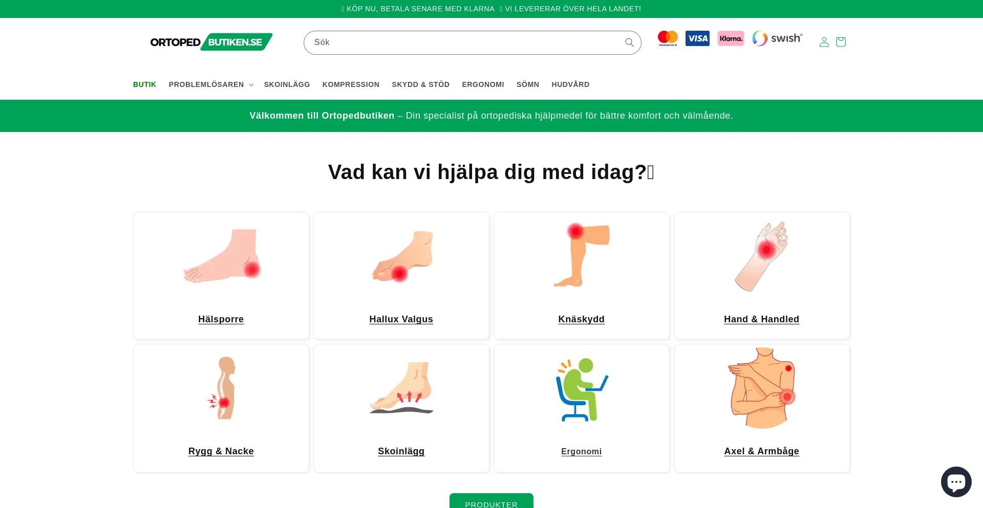 Skoinlägg, knäskydd och stödstrumpor av hög kvalitet för smärtlindring och bättre hälsa. Trygg e-handel med snabb leverans från svenska lager. Handla online idag!