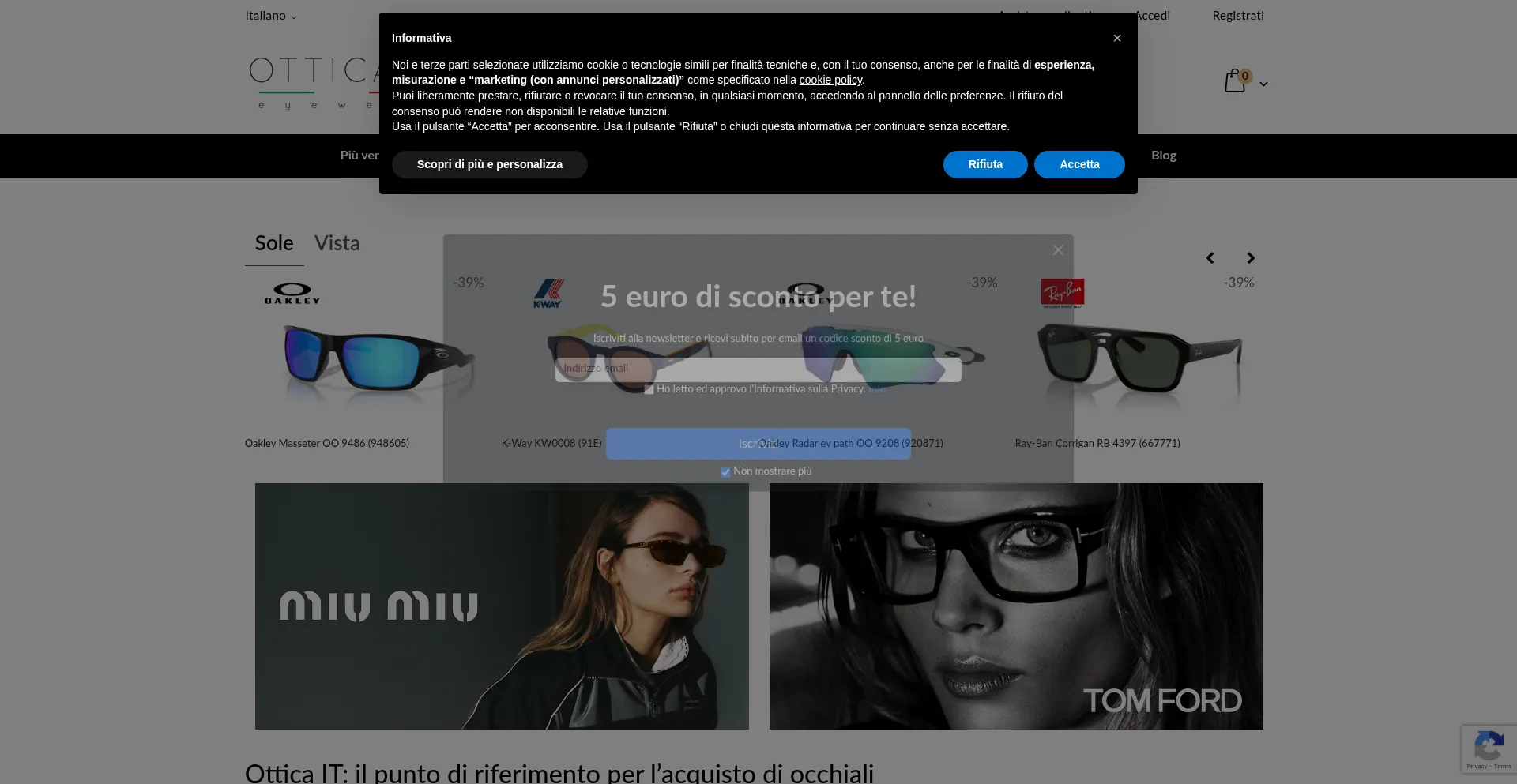 Ottica IT è il negozio online di occhiali da sole e occhiali da vista da donna e da uomo delle migliori marche. Rivenditori autorizzati di occhiali Ray-Ban, Gucci, Oakley, Sain...
