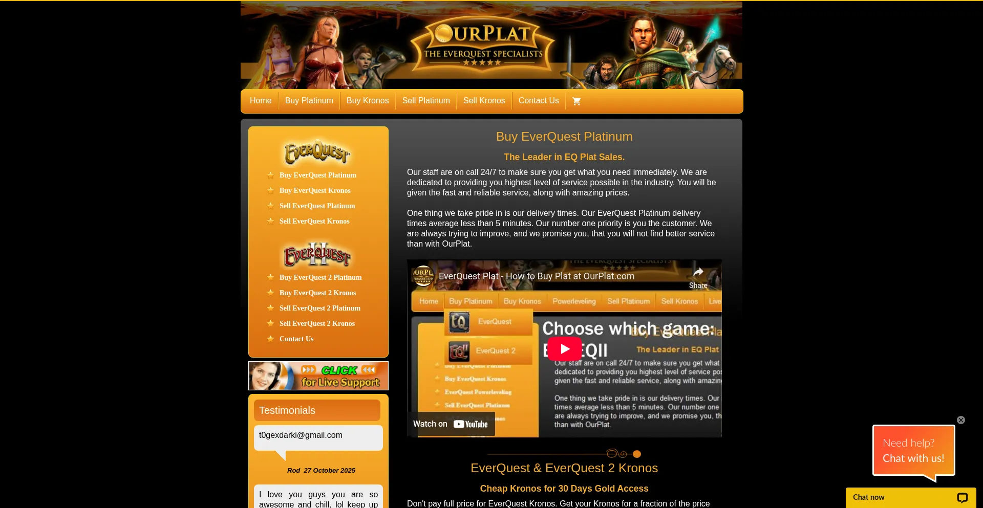 OurPlat - EverQuest Platinum, Kronos and Power Leveling