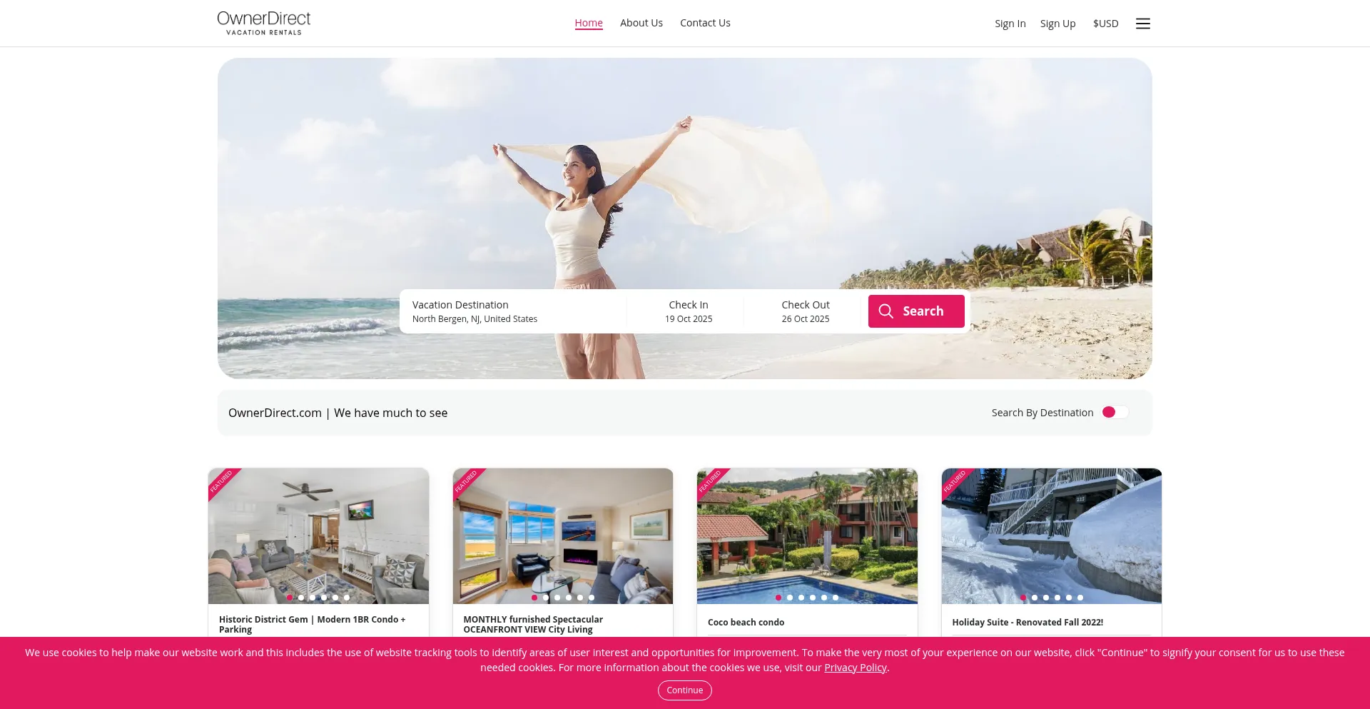 El sitio web implementa mecanismos de consentimiento de cookies en cumplimiento con regulaciones de privacidad como GDPR o CCPA. Esto demuestra que ownerdirect.com adhiere a estándares de protección de datos y proporciona a los usuarios control sobre prácticas de recolección de datos personales.