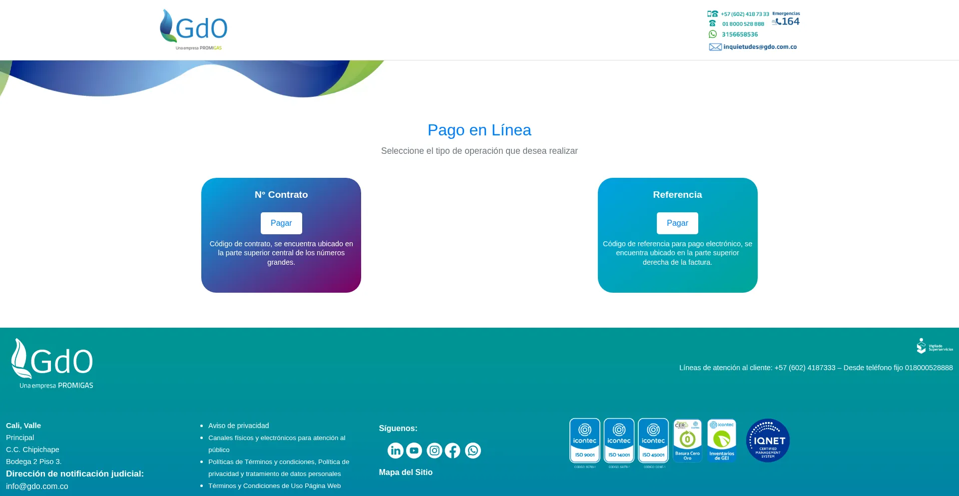 Pague su factura de Gases de Occidente (GDO) y Brilla en línea de forma segura. Consulta de saldo, ingreso de datos y pagos con tarjeta o QR. Evite cortes. Paga tu factura.