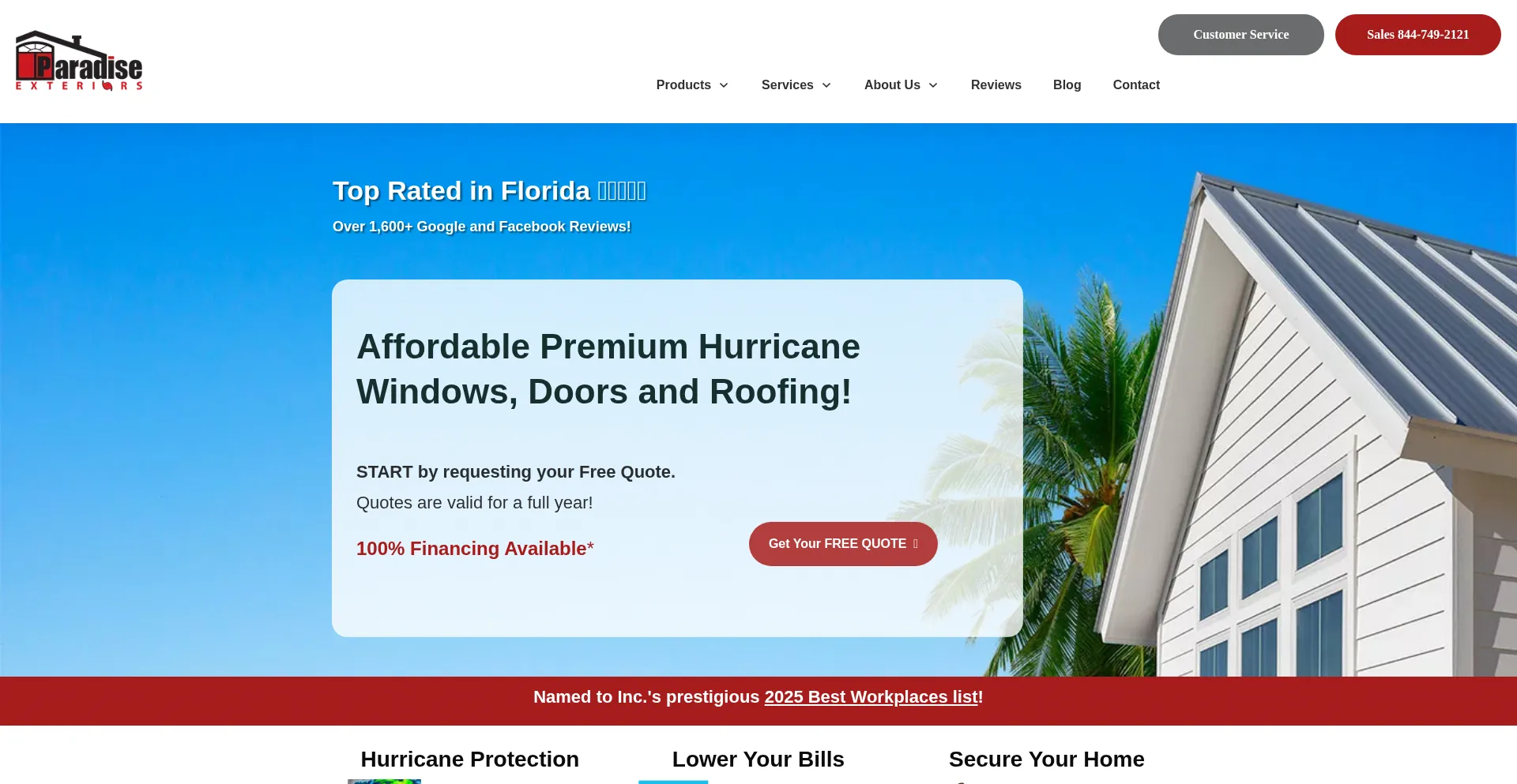 At Paradise Exteriors we install premium impact-rated hurricane windows doors & stormproof roofing, backed by our best price guarantee.