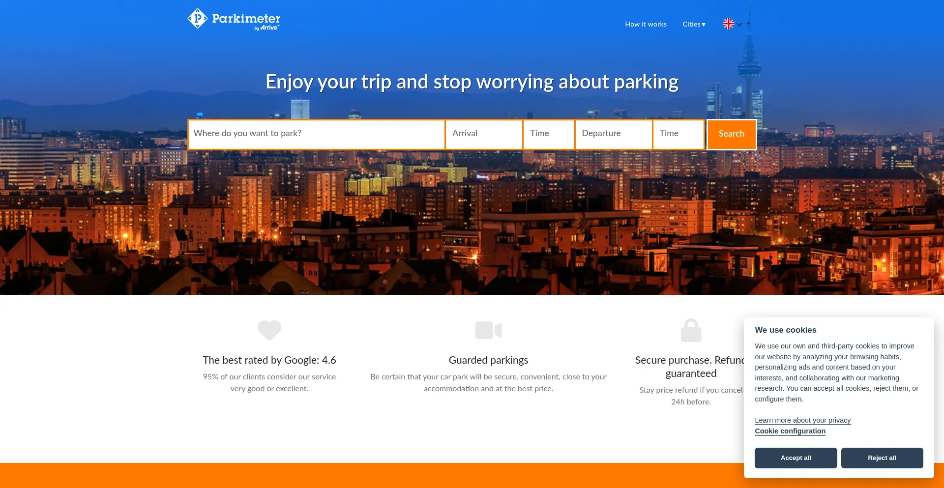Book parking easily: close to your accommodation, save up to 70%, assure your spot, guarded car parks. Park in Barcelona and many more locations from 7€/day.