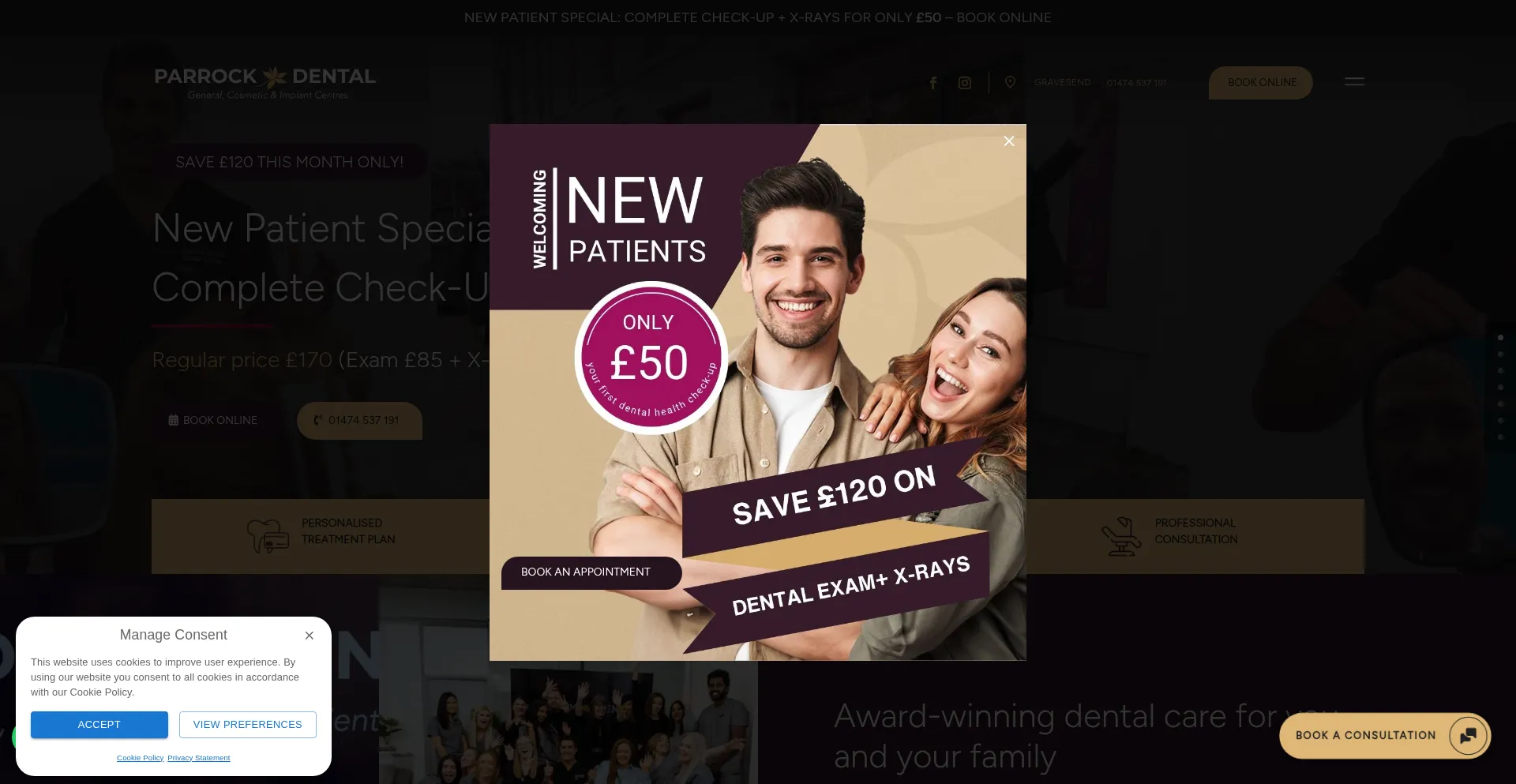El sitio web implementa mecanismos de consentimiento de cookies en cumplimiento con regulaciones de privacidad como GDPR o CCPA. Esto demuestra que parrockdental.co.uk adhiere a estándares de protección de datos y proporciona a los usuarios control sobre prácticas de recolección de datos personales.