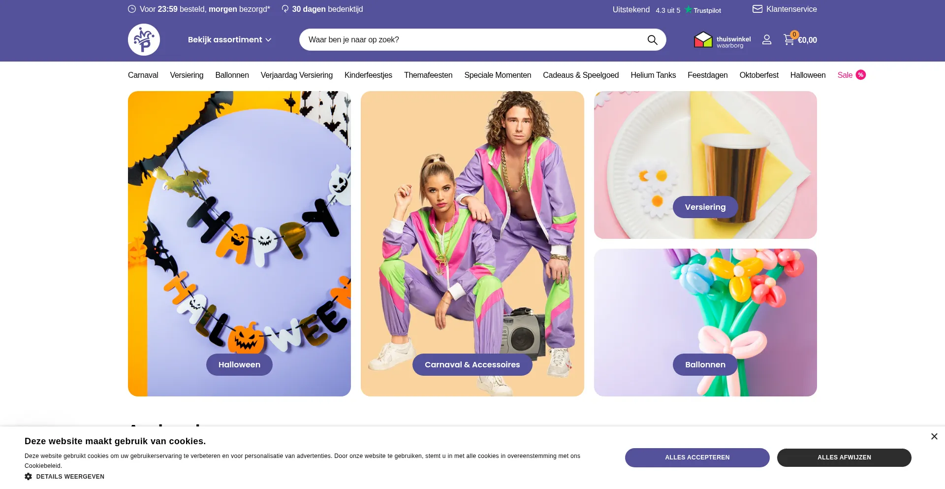 De grootste online Partywinkel met meer dan 500.000 feestartikelen op voorraad ✓ Voor 23:59 besteld, morgen in huis ✓ Gratis retourneren ✓ Thuiswinkel Waarborg