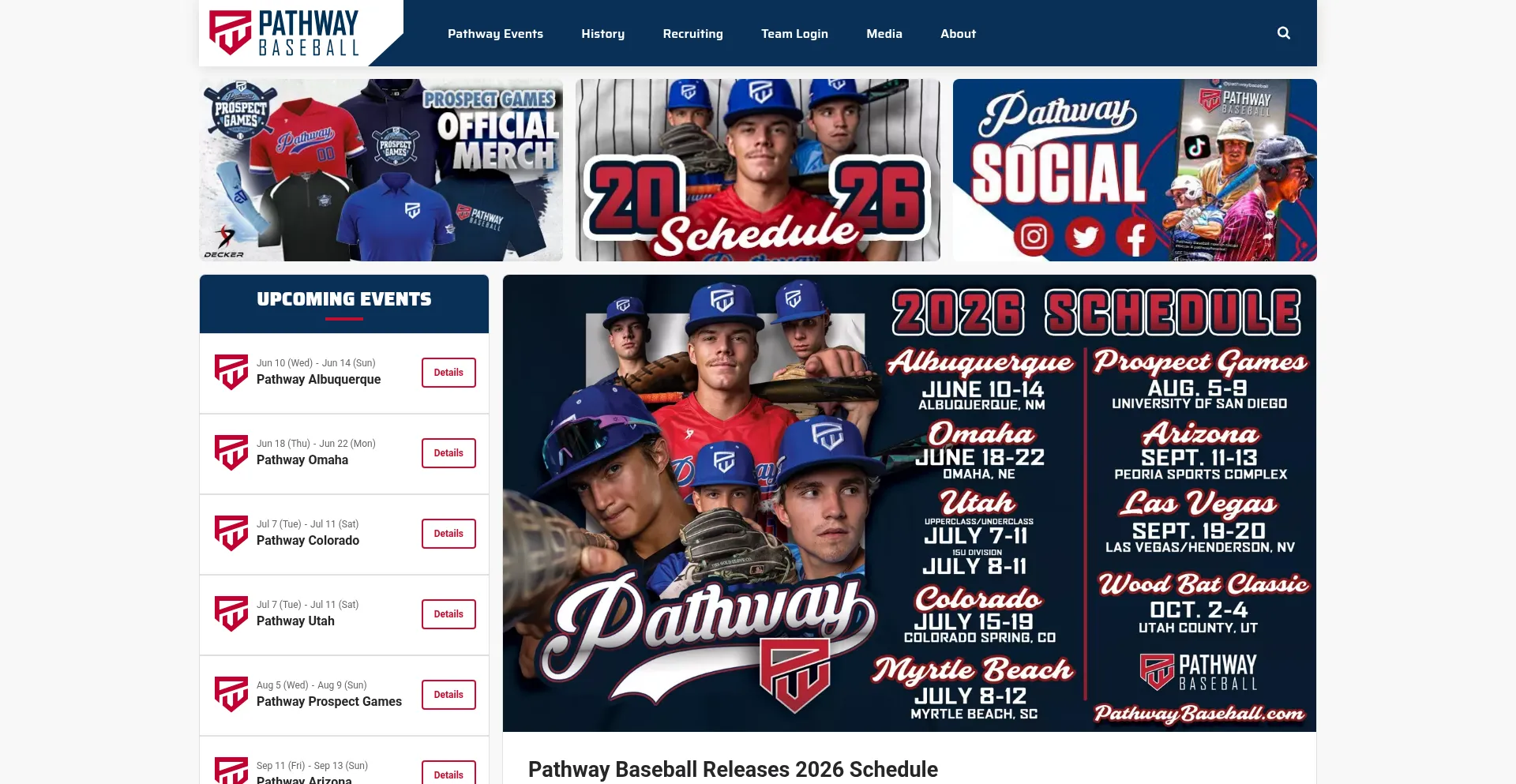 La presencia de enlaces de redes sociales en el sitio web indica que pathwaybaseball.com mantiene cuentas oficiales en redes sociales, lo que es un indicador positivo de credibilidad y compromiso.