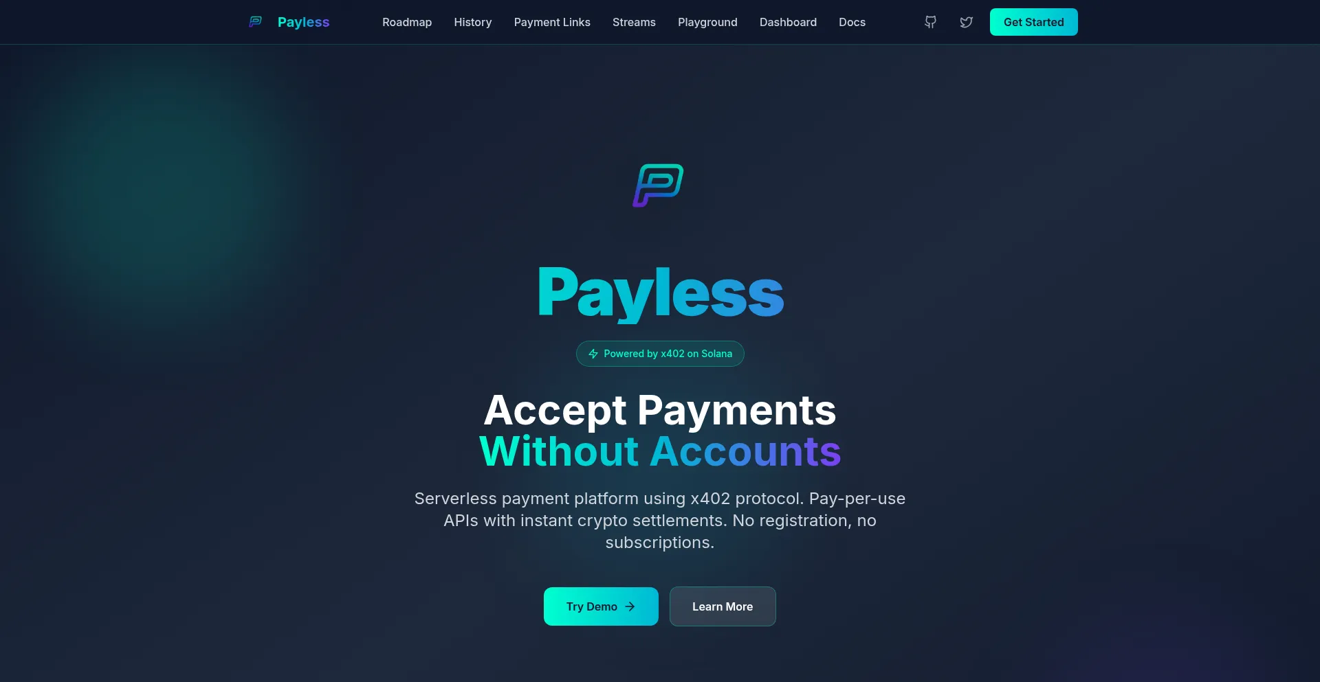 Payless: The simplest way to monetize APIs with crypto. Built on x402 protocol for Solana. Zero fees, instant settlements, one line of code. Perfect for developers and AI agents.