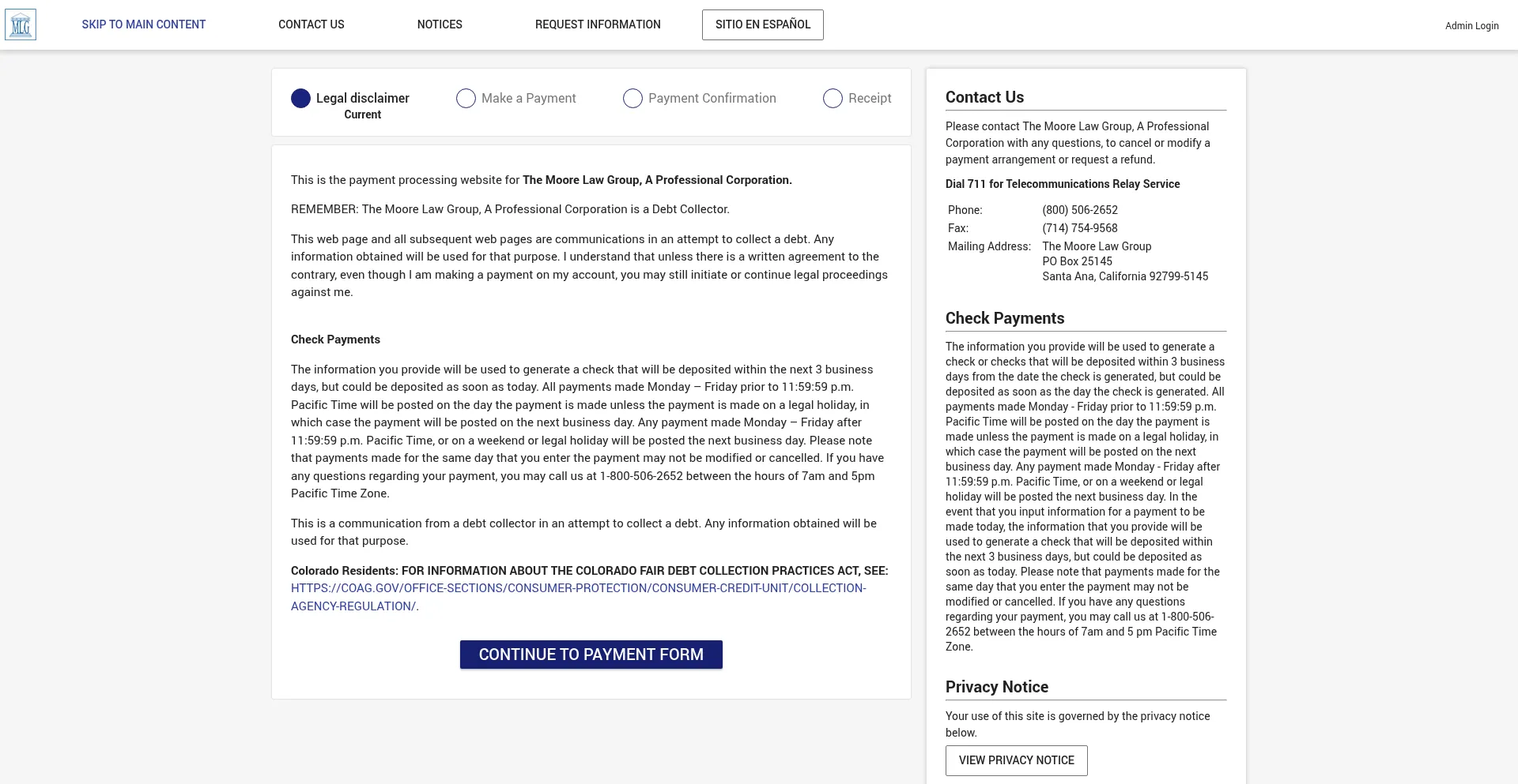The Moore Law Group, A Professional Corporation Payment Site - Legal Disclaimer