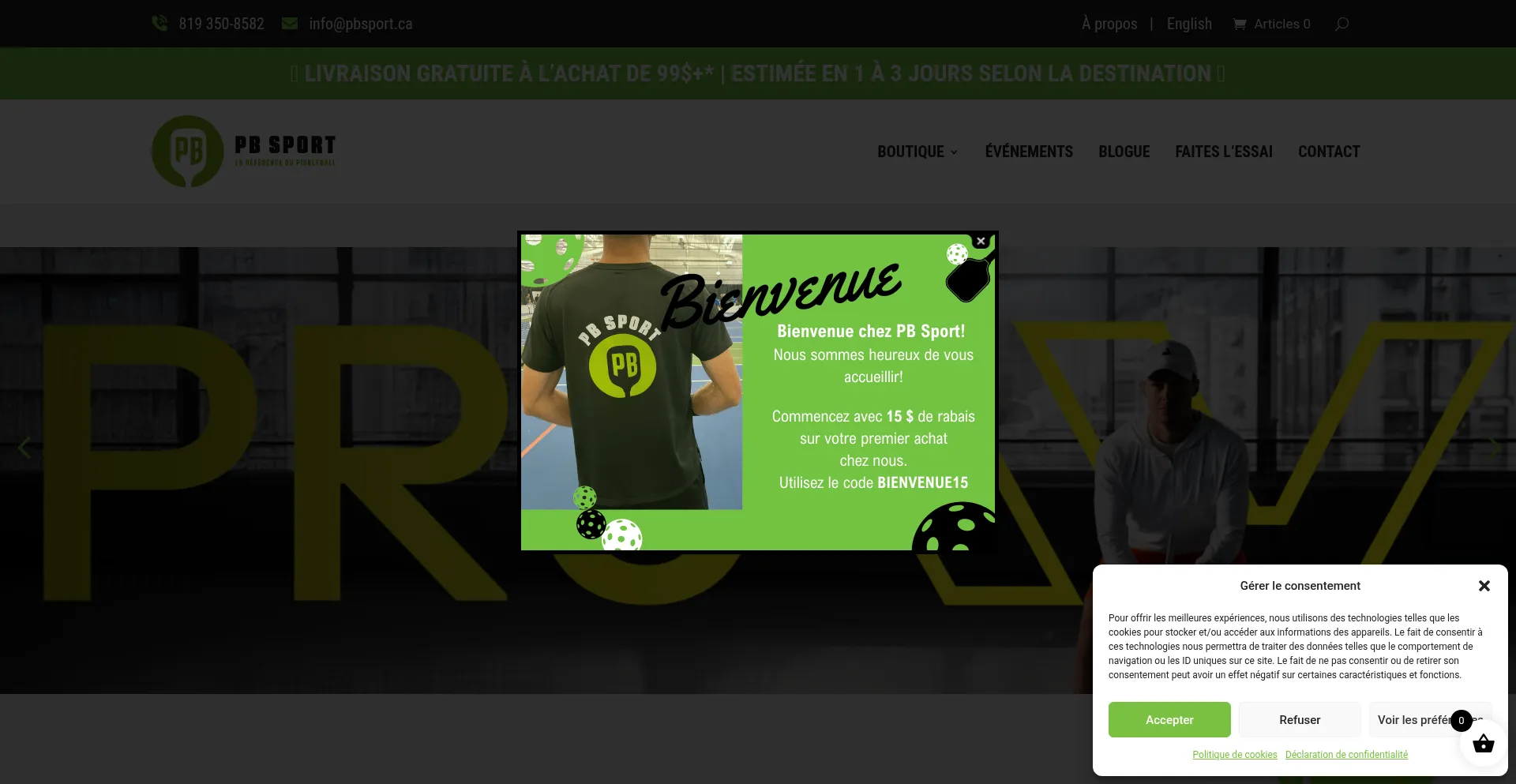 PB Sport : boutique québécoise d’équipements de pickleball. Raquettes, balles, souliers et plus. Livraison rapide dès 99 $ d’achat.