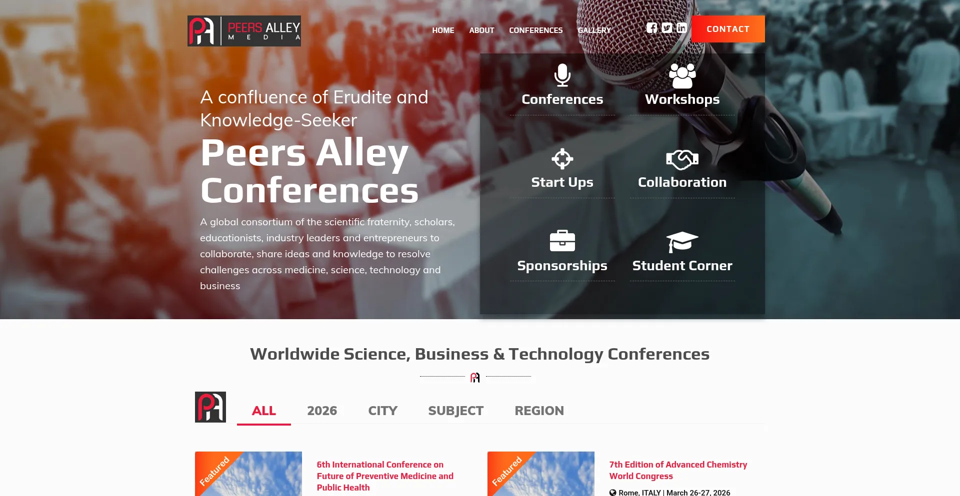Peers Alley Media | Join your peers at Best Medical, Pharma, Life Sciences, Business and Technology Conferences across Europe, USA, Asia, Australia, Middle East and Canada held...