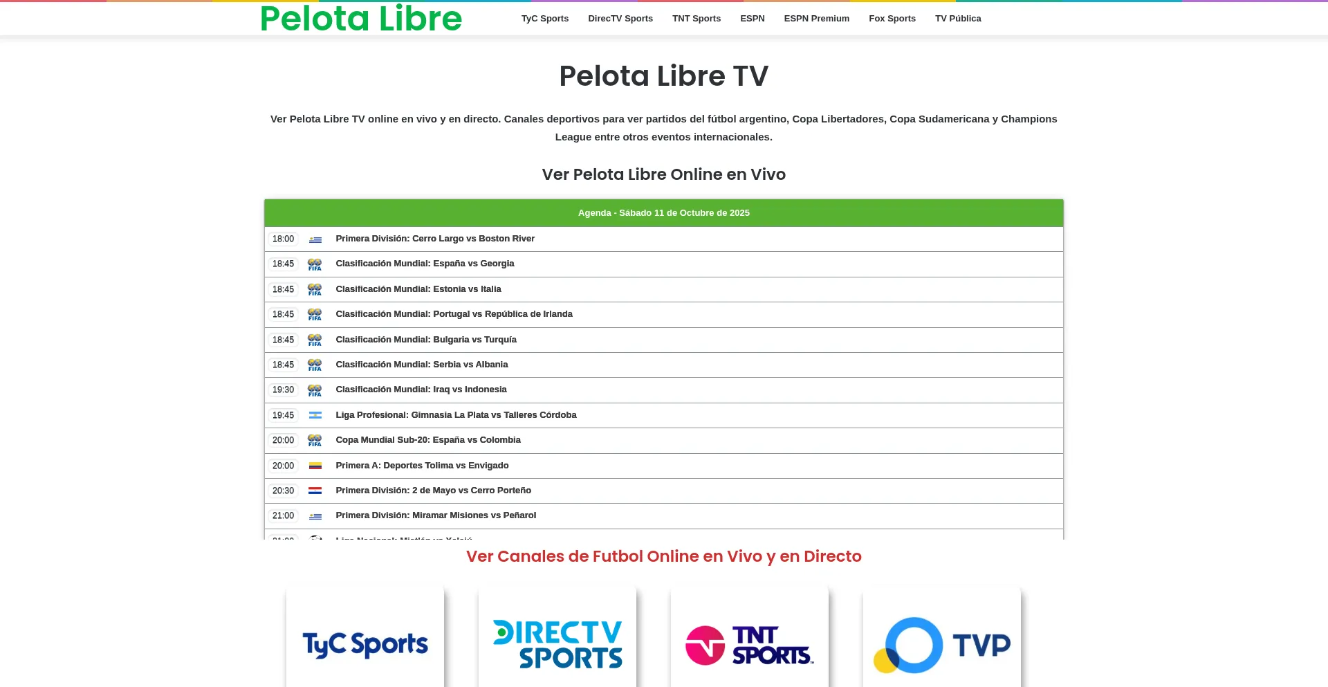 Pelota Libre - Partidos de Fútbol y Canales Deportivos Online en Vivo