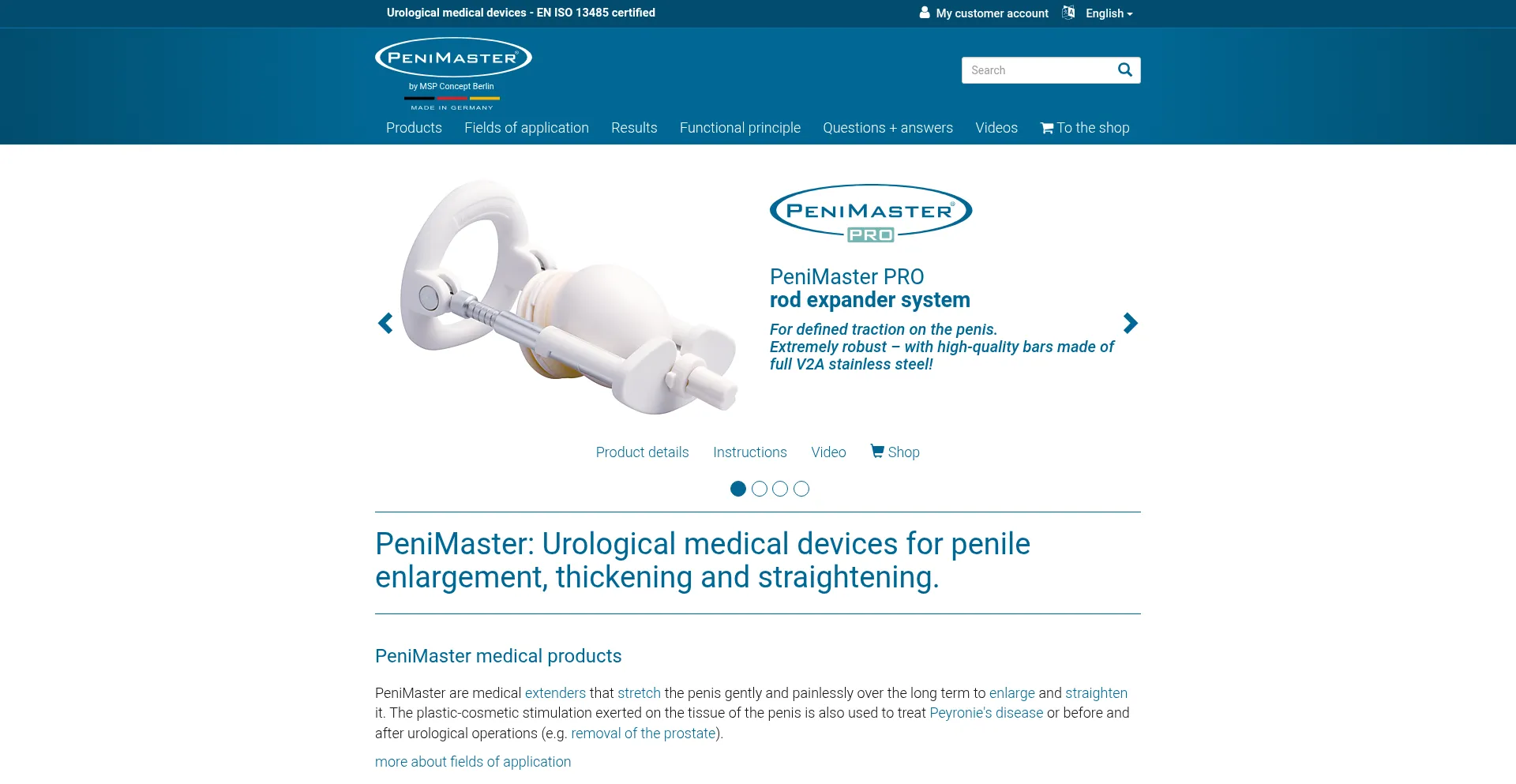 PeniMaster are medical extenders that stretch the penis gently and painlessly over the long term to enlarge and straighten it. Made in Germany.