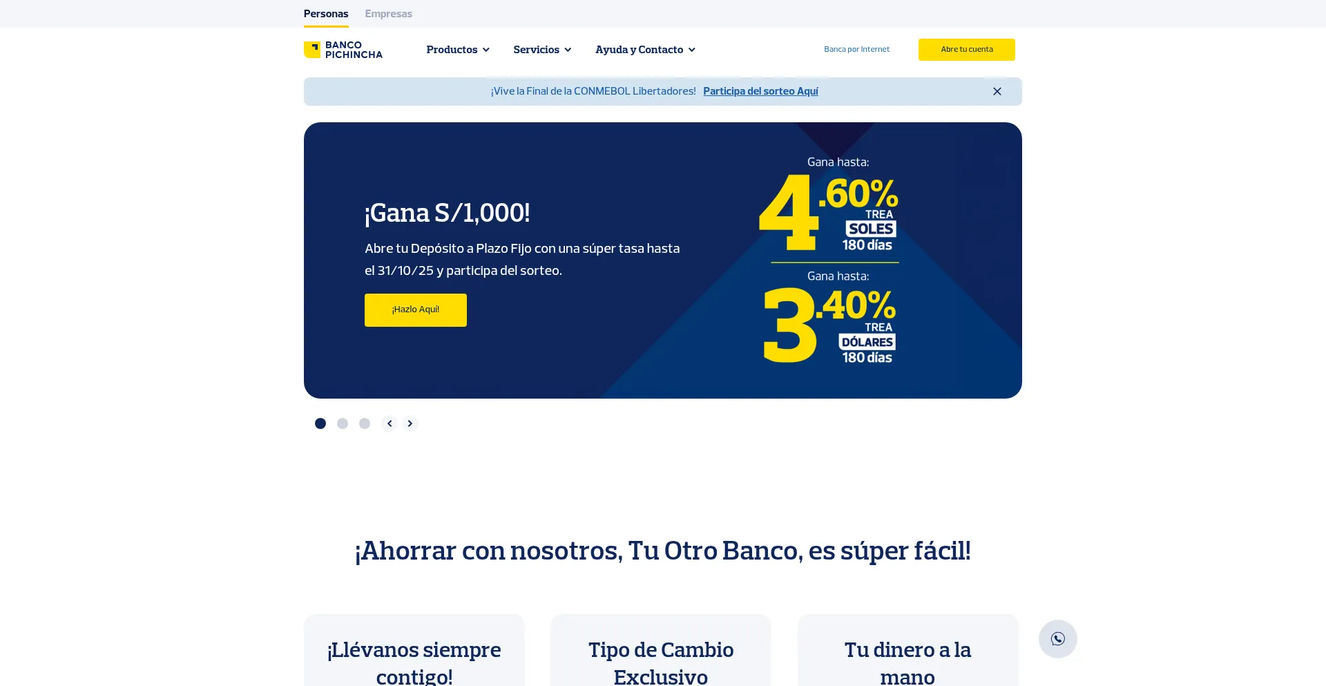 Somos Banco Pichincha, Tu Otro Banco con soluciones financieras para ahorrar, cambiar dólares y acceder a Préstamos Personales e Hipotecarios con beneficios exclusivos. ¡Haz ...