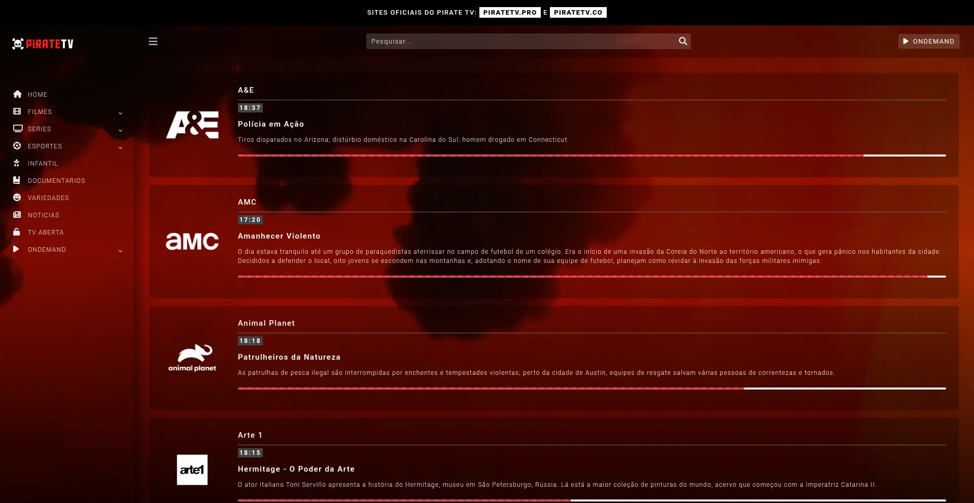Pirate TV PRO, canais de tv online ao vivo grátis de esporte, futebol ao vivo, desenhos, filmes e seriados. Escolha um canal e assista grátis!