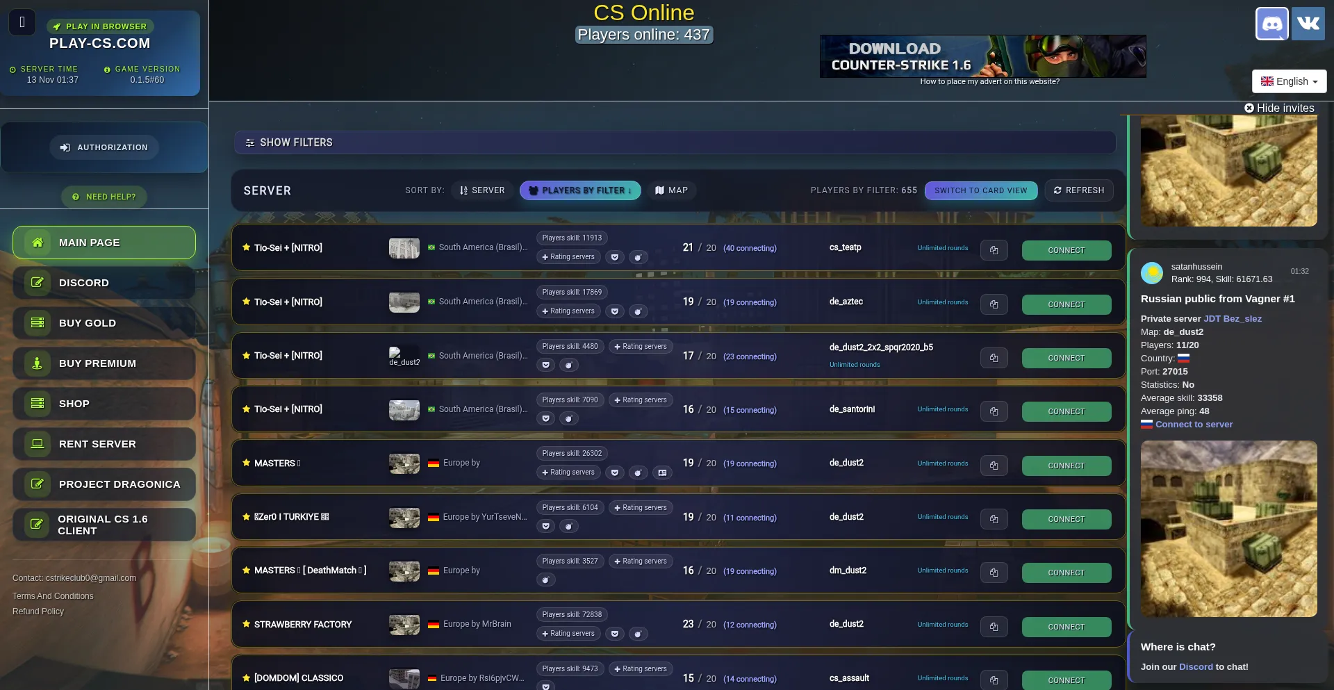 PLAY-CS.COM — Best place for playing CS 1.6 with friends. Here you can play cs 1.6 online with friends or bots without registration