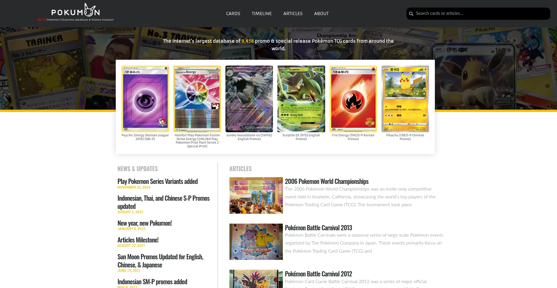 Pokumon is the internet’s largest database of the Pokemon TCG’s promo cards. Featuring complete lists of Wizards of the Coast era and TPCi promos.